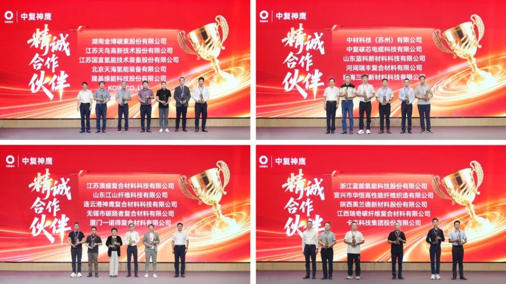 活動現場,中復神鷹特設“精誠合作伙伴”獎,為長期以來給予中復神鷹鼎力支持、深度協同,并為產業發展做出卓越貢獻的合作伙伴頒獎。沉甸甸的獎杯是產業鏈上下游緊密合作的見證,也蘊含著未來同心同行、共創輝煌的堅定承諾和美好期盼。